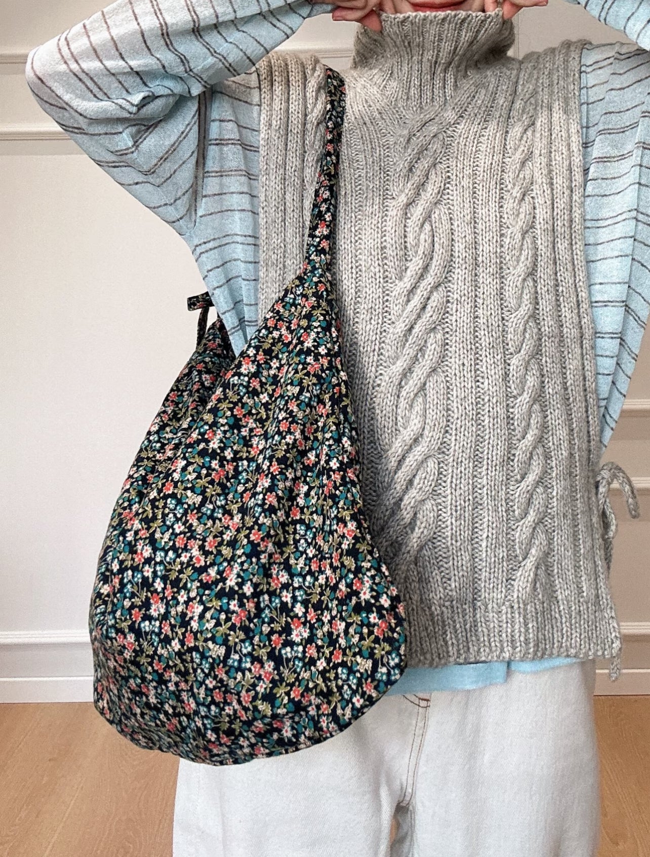 A soft, slouchy tote with a dreamy floral print — inspired by those quiet coastal nights where everything slows down.